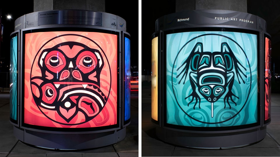 Richmond’s Public Art Program is dedicated to supporting and highlighting original artworks by Indigenous artists, with a strong emphasis on works by hən̓q̓əmin̓əm̓ speaking communities, particularly Musqueam. These works add vibrancy and meaning to the public realm while fostering public awareness, understanding, and enjoyment of Indigenous arts in everyday life.