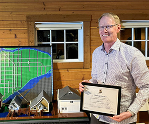 A photo of Ken Chow in Steveston with his Heritage AwardPhoto: Ken Chow, Interface Architecture
