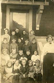 Photo caption: First Class to attend General Currie School on the front steps of the School (1921), City of Richmond Archives 2001-10-4