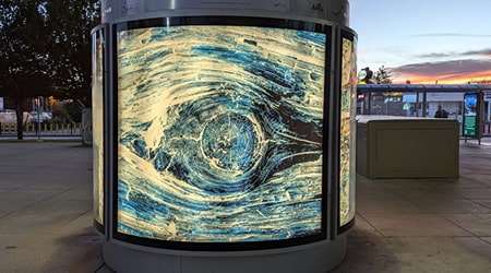Commuters walking along the pedestrian concourse underneath the Canada Line can enjoy a new art exhibition at the Aberdeen and Lansdowne Canada Line stations. The work of Richmond artists Maria Coletsis, Ranu Chakraborty and Shirley Vuong have been installed in the large, backlit display cases at the base of three concrete support columns and will be on view until January 31, 2025.