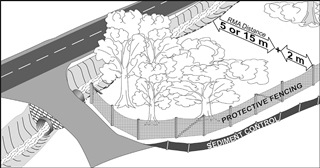 - A brightly coloured, temporary fence of a minimum height of 1.2m must be erected at least 2m outside of the RMA. An erosion and sediment control fence must be installed on the property side of the brightly coloured fence. All additional RMA protection measures, as defined by a Qualified Environmental Professional must also be installed/completed.