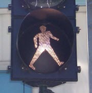 When a pedestrian pushes the button, a call is sent to the signal controller to turn on the “Walk” and flashing “Don’t Walk” sequence (which is timed separately from the parallel vehicle green light). The pedestrian pushbutton must be pushed for the pedestrian walk sequence to appear. The signal will not usually change immediately but the controller will fit the pedestrian sequence into its programmed operation for the particular time of day. The signal controller registers the first time the button is pushed and remembers it until the walk light comes on. Pushing the button repeatedly will not make the walk sequence appear sooner.